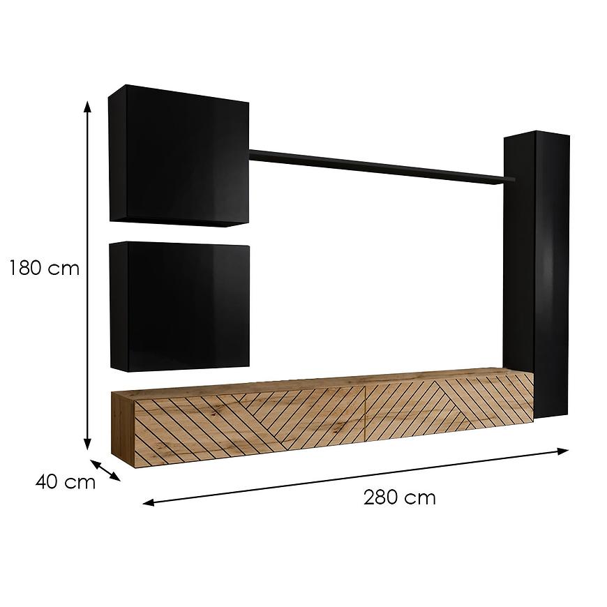 Meblościanka Switch to esencja nowoczesnego designu, doskonale wpisująca się w trendy aranżacyjne. Z imponującą wysokością 180 cm, szerokością 280 cm i głębokością 40 cm, meblościanka stanowi doskonałe rozwiązanie do przemyślanej organizacji przestrzeni w Twoim wnętrzu.