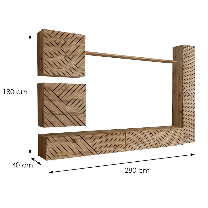 Meblościanka Switch to esencja nowoczesnego designu, doskonale wpisująca się w trendy aranżacyjne. Z imponującą wysokością 180 cm, szerokością 280 cm i głębokością 40 cm, meblościanka stanowi doskonałe rozwiązanie do przemyślanej organizacji przestrzeni w Twoim wnętrzu.