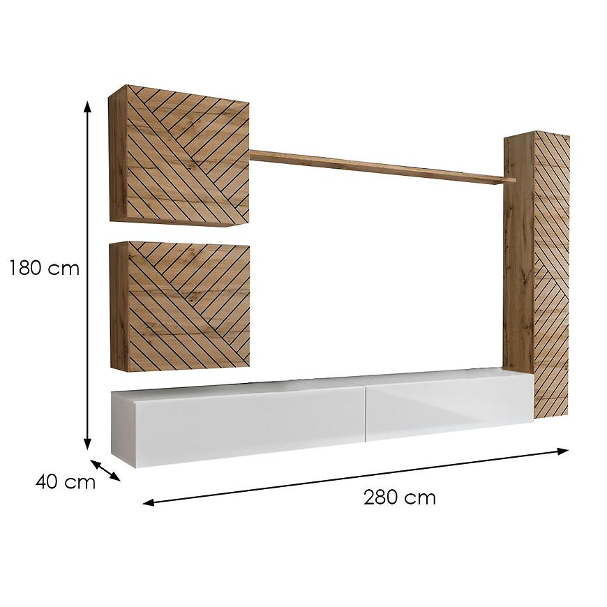 Meblościanka Switch to esencja nowoczesnego designu, doskonale wpisująca się w trendy aranżacyjne. Z imponującą wysokością 180 cm, szerokością 280 cm i głębokością 40 cm, meblościanka stanowi doskonałe rozwiązanie do przemyślanej organizacji przestrzeni w Twoim wnętrzu.