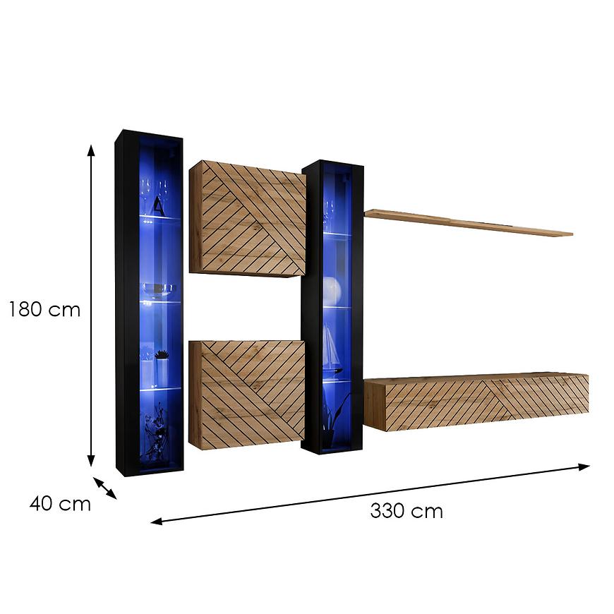 Wymiary meblościanki sprawiają, że będzie stanowić centralny punkt każdego wnętrza, dodając pomieszczeniu stylu i elegancji. Jej pojemność zapewnia wystarczająco dużo miejsca do przechowywania oraz eksponowania najważniejszych przedmiotów.