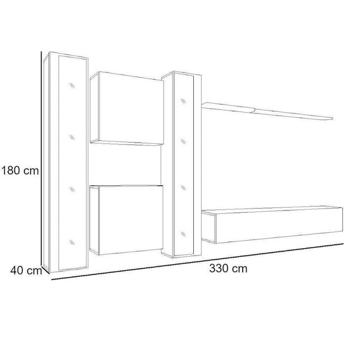Meblościanka Switch XVI szkło + LED Czarny/Wotan