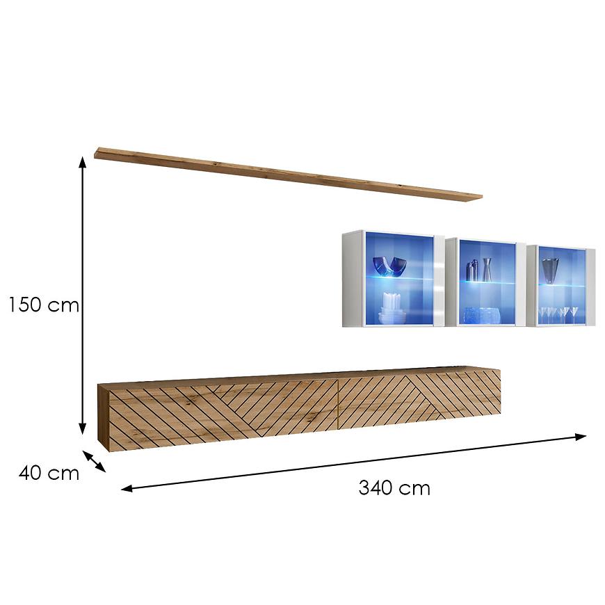 Wymiary meblościanki sprawiają, że będzie stanowić centralny punkt każdego wnętrza, dodając pomieszczeniu stylu i elegancji. Jej pojemność zapewnia wystarczająco dużo miejsca do przechowywania oraz eksponowania najważniejszych przedmiotów.