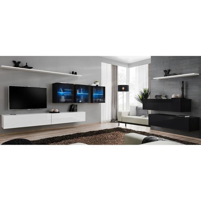 Meblościanka Switch XVII szkło + LED Biały/Czarny