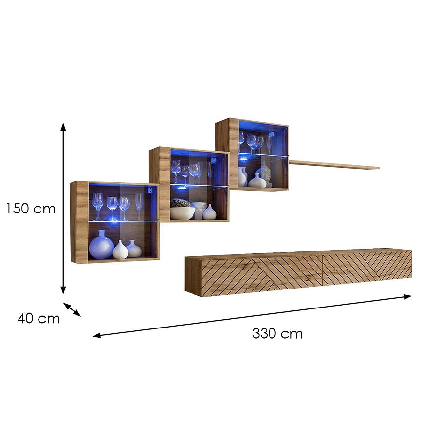 Kolor frontów i korpusu, utrzymane w odcieniu dąb wotan nadaje meblościance Switch XX uniwersalnego charakteru. Matowe wykończenie frontów i korpusu dodaje meblowi elegancji, jednocześnie łagodząc intensywność koloru. To połączenie sprawia, że meblościanka idealnie komponuje się z różnymi stylami wystroju wnętrz.
