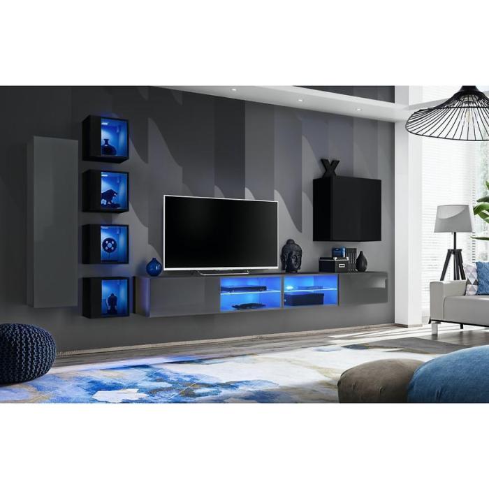Meblościanka Switch XXVI Grafit/Czarny to szeroki zestaw mebli do salonu, łączący nowoczesny wygląd z praktycznym układem półek i szafek. Fronty w odcieniach grafit i czarny z połyskiem nadają meblowi elegancji i wyrazistego charakteru, a matowy korpus harmonijnie współgra z całością, tworząc subtelny kontrast i szare akcenty w aranżacji wnętrza.