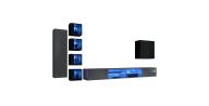 Meblościanka posiada wbudowane oświetlenie LED, które subtelnie podkreśla fronty i dodaje przyjemnej atmosfery w salonie. LED uwydatnia kontrast między grafitowymi i czarnymi frontami, wprowadzając designerski efekt wizualny.