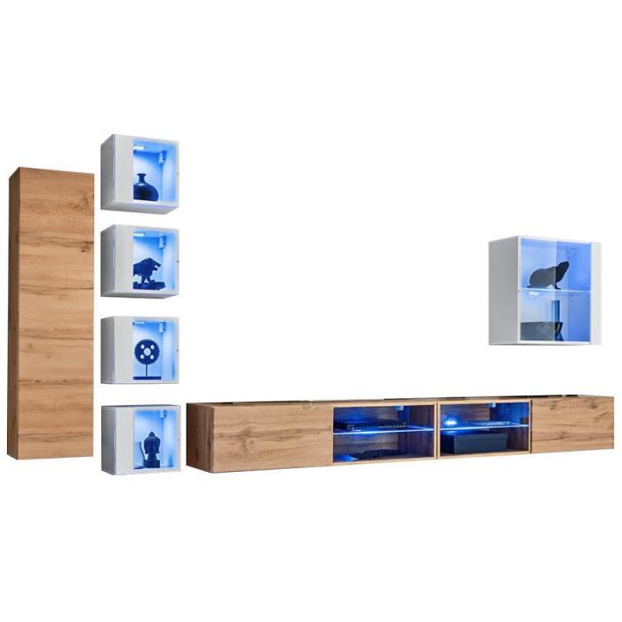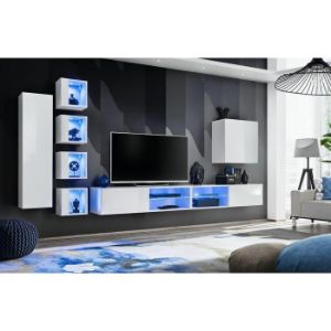 Meblościanka Switch XXVI Wotan/Biały została zaprojektowana jako szeroki zestaw, który łączy różne elementy przechowywania w spójną całość. Szafki, półki i witryny pozwalają na wygodne ustawienie sprzętu RTV, dekoracji, książek i innych przedmiotów codziennego użytku.