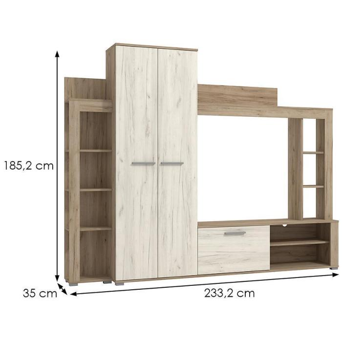 Jest to meblościanka, która wpasuje się w większość aranżacji nadając pomieszczeniu nowoczesny i elegancki design.