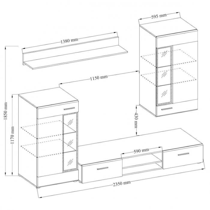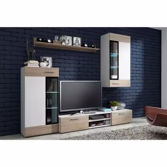 Meblościanka z kolekcji Tango stanowi gotowy zestaw potrzebnych mebli z których stworzysz funkcjonalne pomieszczenie takie jak salon lub pokój dzienny. Bryły wchodzące w skład zestawu dostępne są w uniwersalnej kolorystyce bieli zestawionej z odcieniem dąb sonoma. Meble wymagają samodzielnego złożenia. Sprawdź również inne modele mebli, które wchodzą w skład różnorodnej kolekcji Tango.