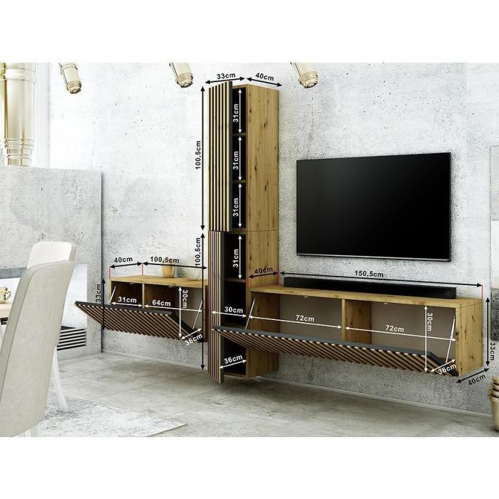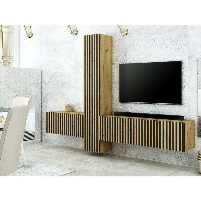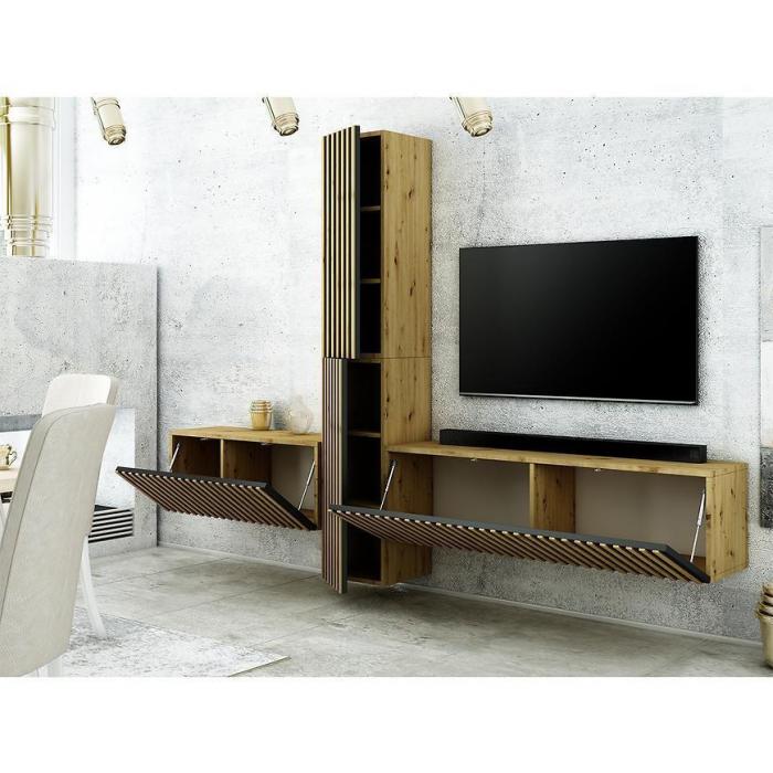 Meblościanka z kolekcji Trend to świetna propozycja do pokoju dziennego czy salonu. Jest niezwykle praktyczna oraz funkcjonalna. Wykonana z najwyższej jakości materiałów - płyty wiórowej laminowanej. Są to meblościanki wiszące, które wpasuje się w większość aranżacji nadając pomieszczeniu loftowy i elegancki design.