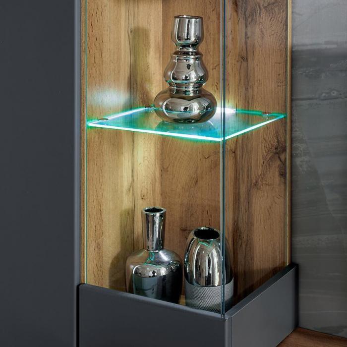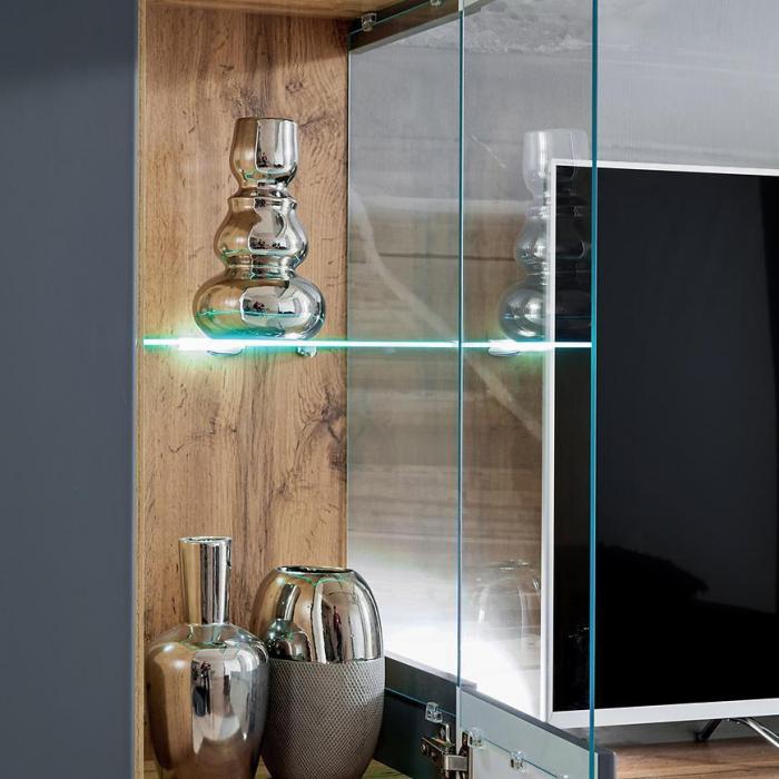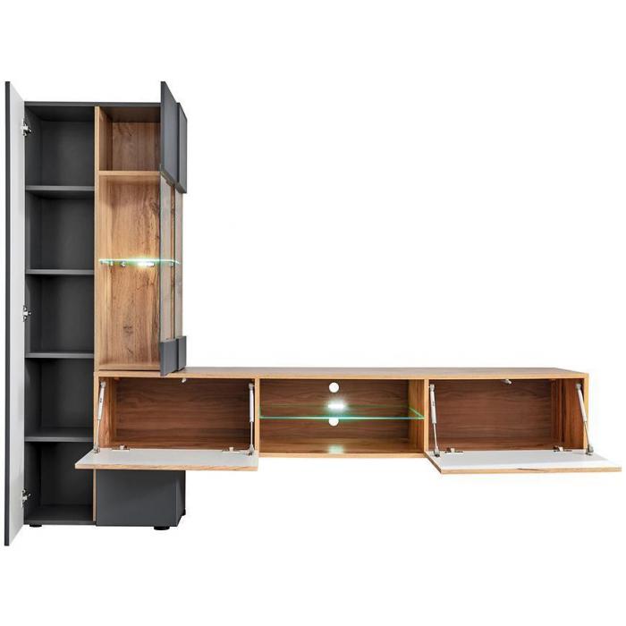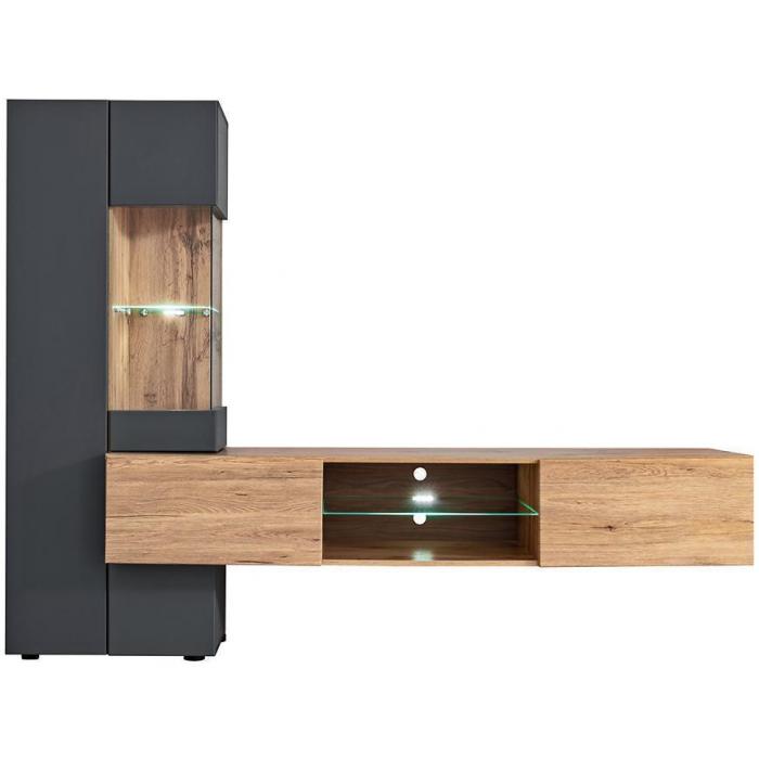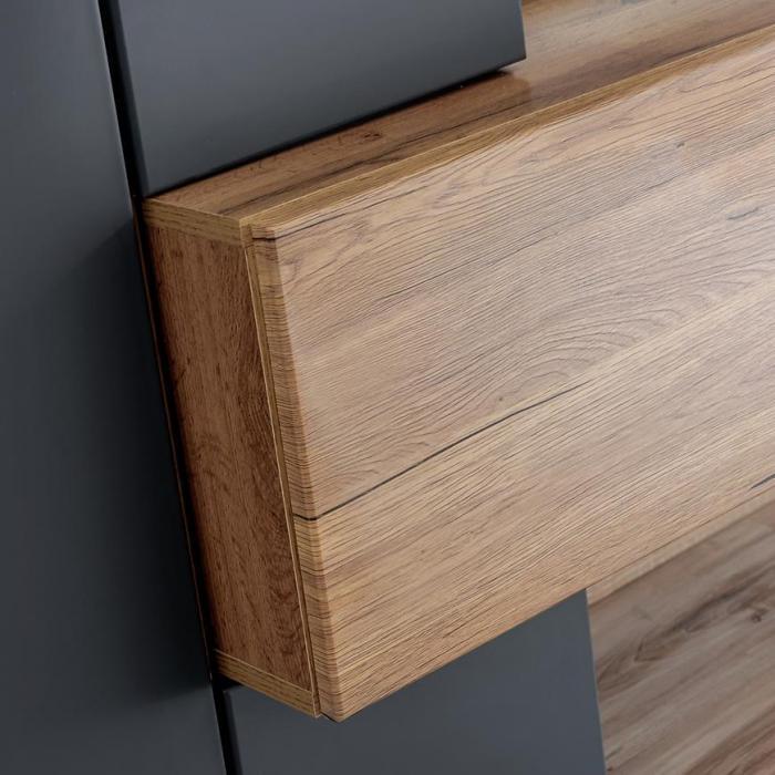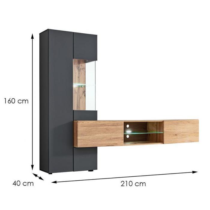 Jest to meblościanka, która wpasuje się w większość aranżacji nadając pomieszczeniu nowoczesny i elegancki design.