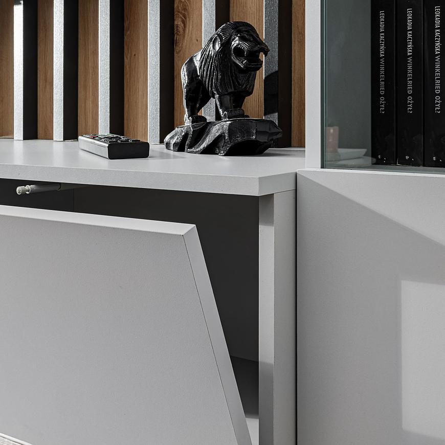 Meblościanka Verti to nie tylko funkcjonalny mebel do przechowywania, ale także designerski element dekoracyjny, który z pewnością przyciągnie uwagę i stworzy wyjątkową atmosferę w Twoim salonie. To idealny wybór dla tych, którzy cenią sobie styl, jakość i funkcjonalność w jednym.