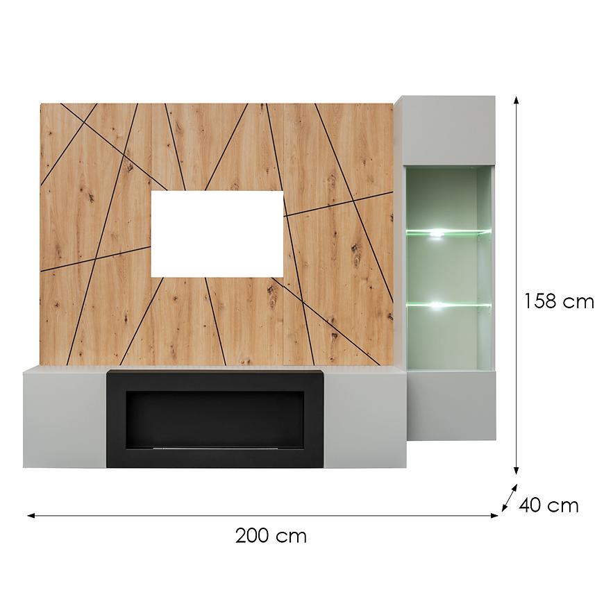 Meblościanka Xari PGAS XR G-K Perla Gray/Artisan to efektowny i funkcjonalny zestaw mebli wiszących do salonu, zaprojektowany z myślą o nowoczesnych wnętrzach. Stylowe połączenie modnego odcienia Perla Gray, dekoru artisan oraz czarnych akcentów tworzy elegancką, a zarazem przytulną kompozycję, idealną do strefy wypoczynkowej.