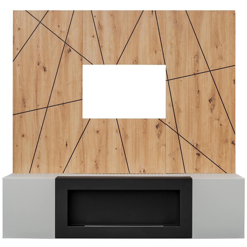 Meblościanka Xari PGAS XR G2-K Perla Gray/Artisan to stylowy i nowoczesny zestaw mebli zaprojektowany z myślą o funkcjonalności i estetyce wnętrz, szczególnie do salonu. Wykonana z wysokiej jakości płyty wiórowej laminowanej, charakteryzuje się matowym wykończeniem w modnym kolorze Perla Gray w połączeniu z Artisan i czarnymi akcentami.