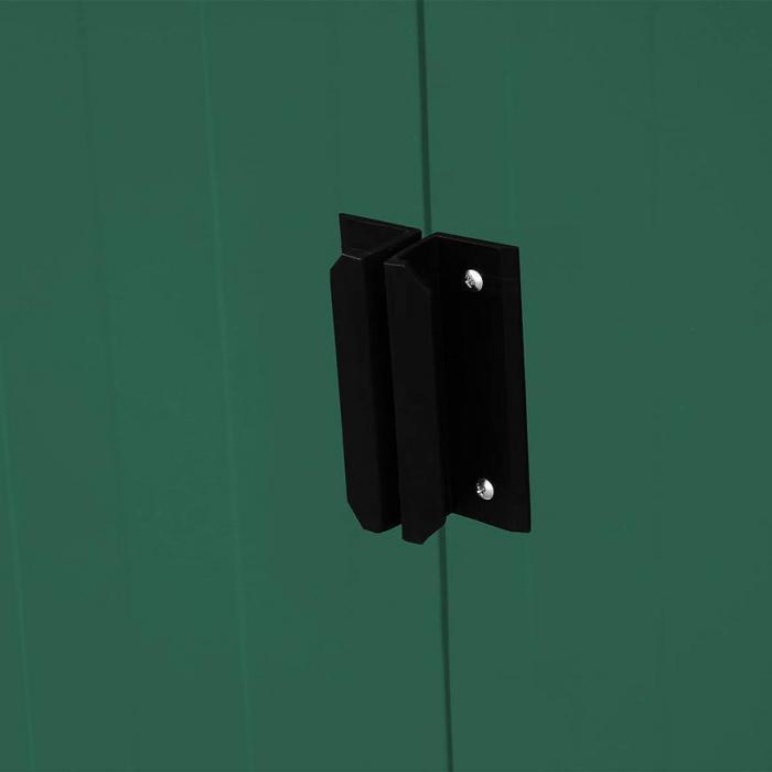 Domek wykonany jest z blachy stalowej ocynkowanej ogniowo i malowanej proszkowo, co zapewnia wysoką odporność na korozję, zmienne warunki atmosferyczne i uszkodzenia mechaniczne. Dzięki solidnemu dachowi panelowemu oraz wbudowanym wywietrznikom, wewnątrz konstrukcji zapewniona jest odpowiednia wentylacja, co pomaga zapobiegać gromadzeniu się wilgoci.
