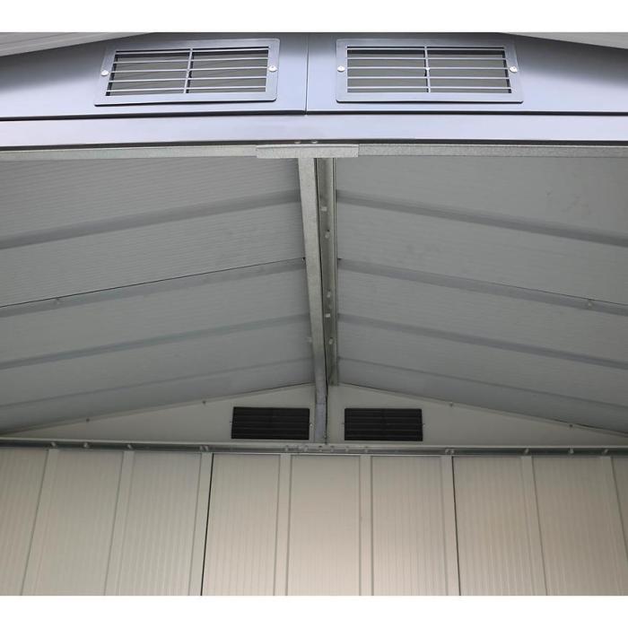 - Przestronne wnętrze – 11,04 m² powierzchni użytkowej pomieści narzędzia, meble ogrodowe, rowery i inne akcesoria.