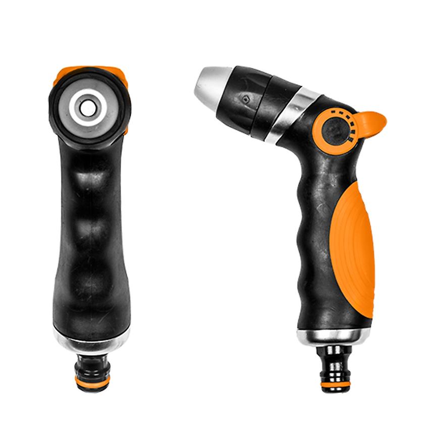Metalowy pistolet do zraszania BLACK LINE to niezawodne narzędzie ogrodowe, idealne zarówno do mycia, jak i delikatnego podlewania roślin. Wykonany z trwałego metalu, wyposażony w adapter do szybkozłącza, zapewnia wygodę użytkowania i długą żywotność. Regulowany strumień wody – od precyzyjnego punktowego po delikatną mżawkę – umożliwia dostosowanie podlewania do indywidualnych potrzeb, co czyni pistolet BLACK LINE uniwersalnym rozwiązaniem do codziennych prac ogrodowych.
