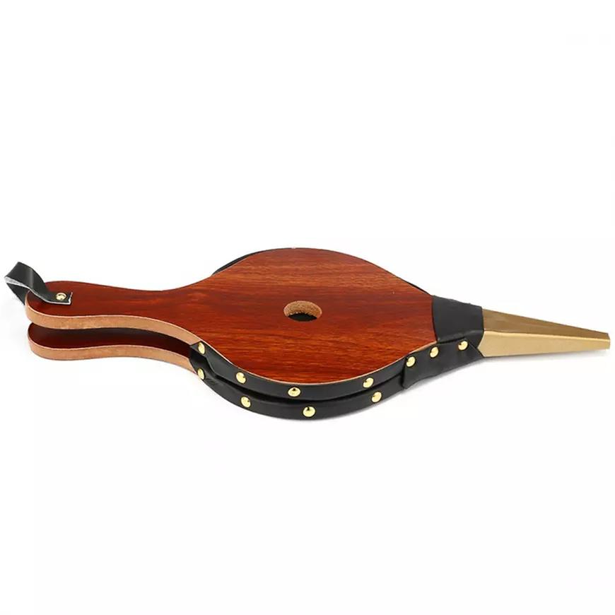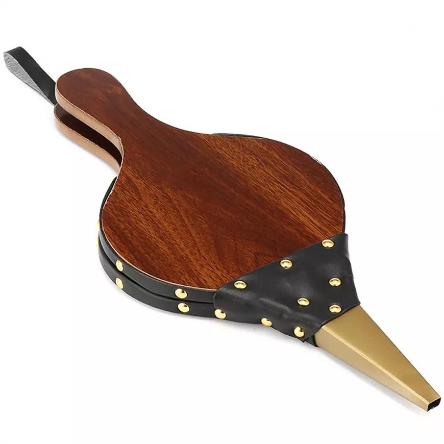 Miech przeznaczony do rozpalania ognia w kominku, wędzarni czy ognisku. Miech wykonany z tworzywa sztucznego, rączka drewniana a dysza ze stali szlachetnej.
