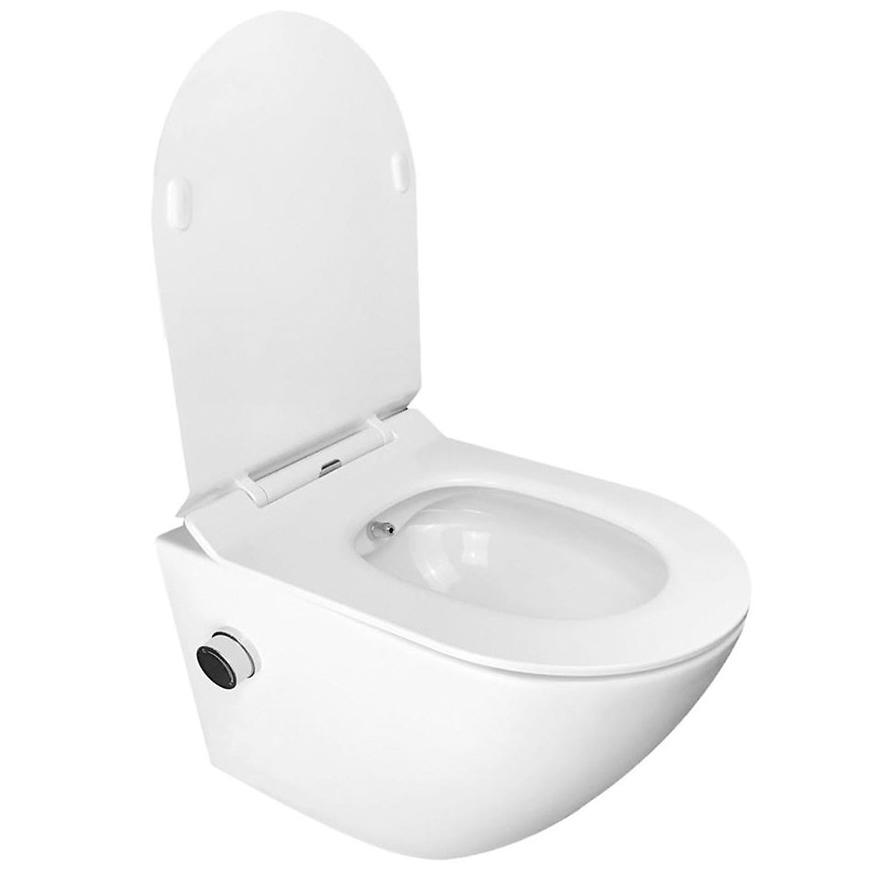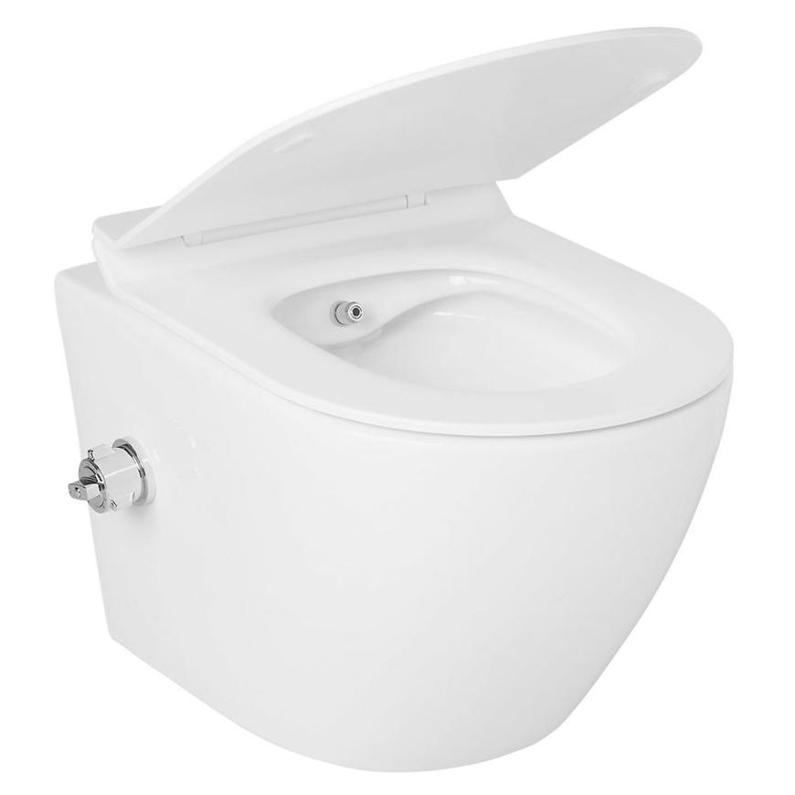Złota miska zawieszana bezkołnierzowa Niagara z deską wolnoopadającą i funkcją bidetu. Elementy montażowe deski są ukryte, co pozwala na estetyczne wykończenie.