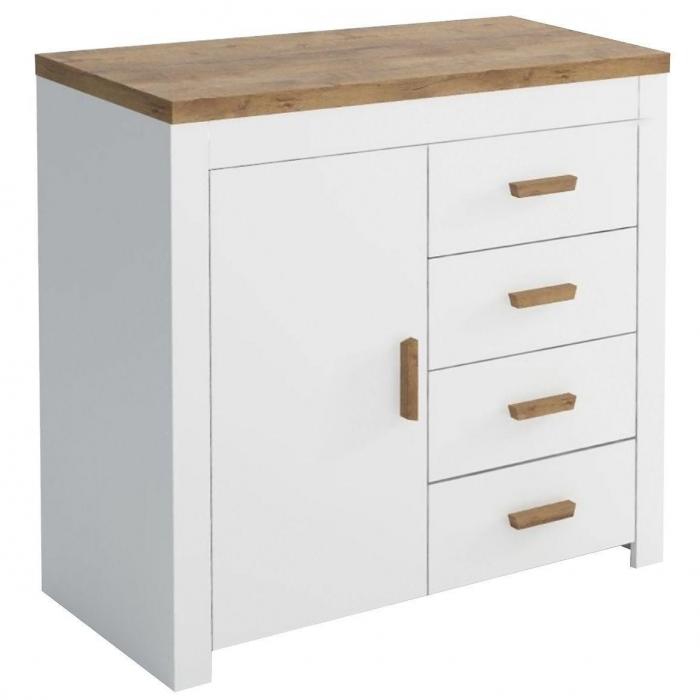 Klasyczna komoda Monaco to połączenie elegancji, stylu i funkcjonalności. Szafka w kolorze biały i dąb wotan świetnie odnajdzie się w nowoczesnych wnętrzach jak również we wnętrzach klasycznych. Idealna do sypialni. Z pewnością wpasują się w wiele aranżacji. Komoda posiada szuflady i drzwiczki dzięki czemu ma łatwy dostęp do wnętrza oraz odpowiednią przestrzeń do przechowywania. Do kompletu można dokupić inne meble z kolekcji Monaco.
