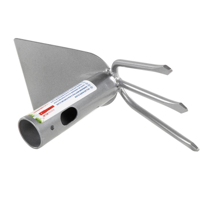 Motyczka metalowa prosta z widełkami 10 cm KLIK LAGUZ to praktyczne narzędzie ogrodowe do pielenia i spulchniania gleby. Wykonana z wytrzymałej stali, wyposażona w system KLIK, zapewnia komfortową i precyzyjną pracę.