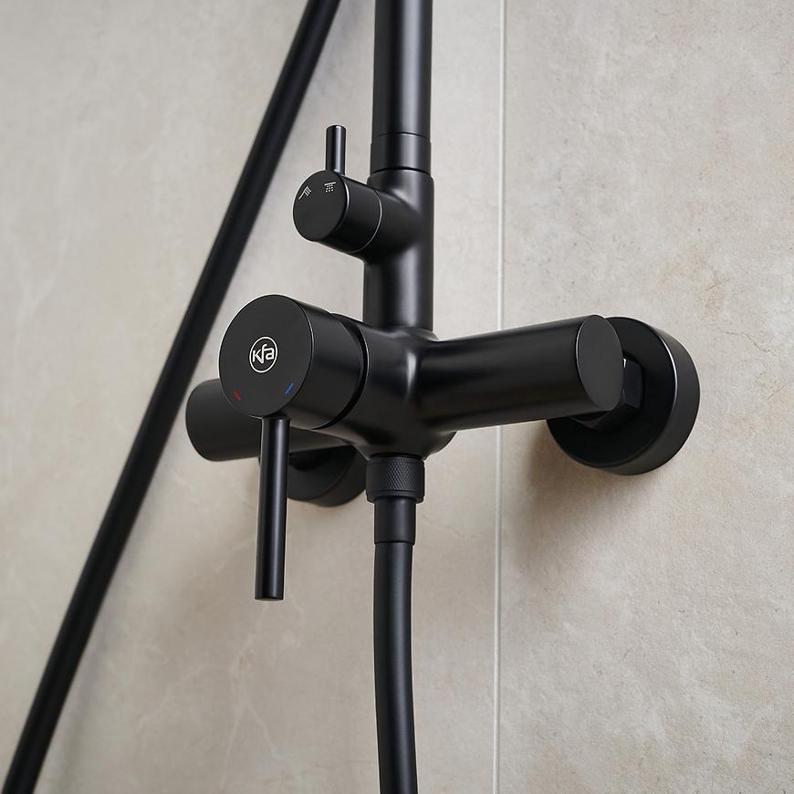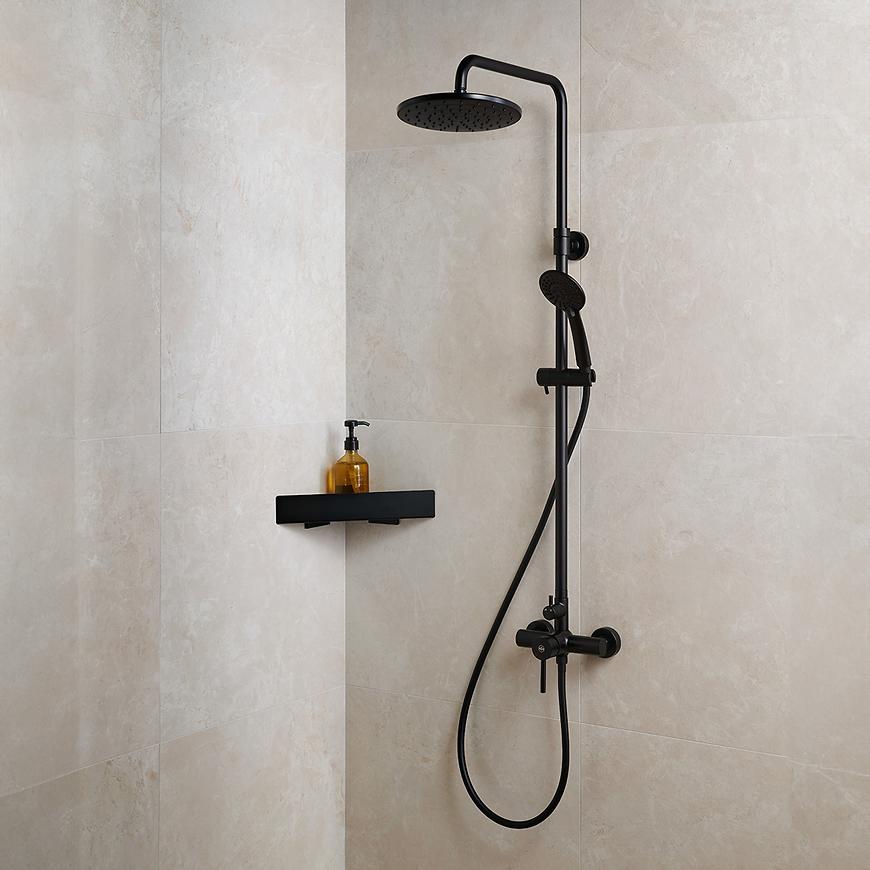 Moza Black deszczownia z baterią mechaniczną to elegancki i funkcjonalny zestaw natryskowy, który doskonale sprawdzi się w nowoczesnych łazienkach. Wykonany z wysokiej jakości mosiądzu w matowym, czarnym wykończeniu, zestaw natryskowy łączy trwałość z nowoczesnym designem.