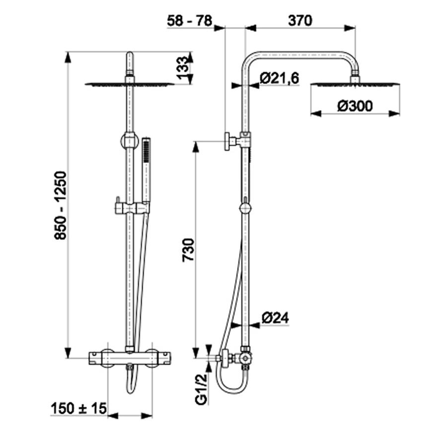 Waga 5,78 kg świadczy o wyjątkowej solidności i trwałości zestawu, gwarantując długotrwałe zadowolenie z użytkowania. Długość regulowanego drążka w zakresie 85-125 cm pozwala dostosować go do Twoich potrzeb, zapewniając komfort podczas prysznica.