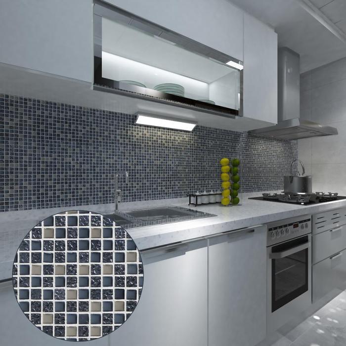 Mozaika wykonana jest z materiałów wysokiej jakości, co zapewnia jej trwałość i odporność na codzienne użytkowanie w pomieszczeniach. Antracytowy kolor w połączeniu z połyskiem sprawia, że każda ściana zyskuje nowoczesny, designerski charakter.
