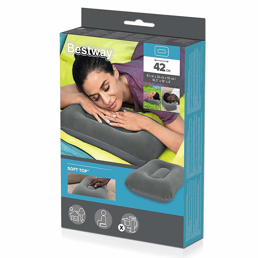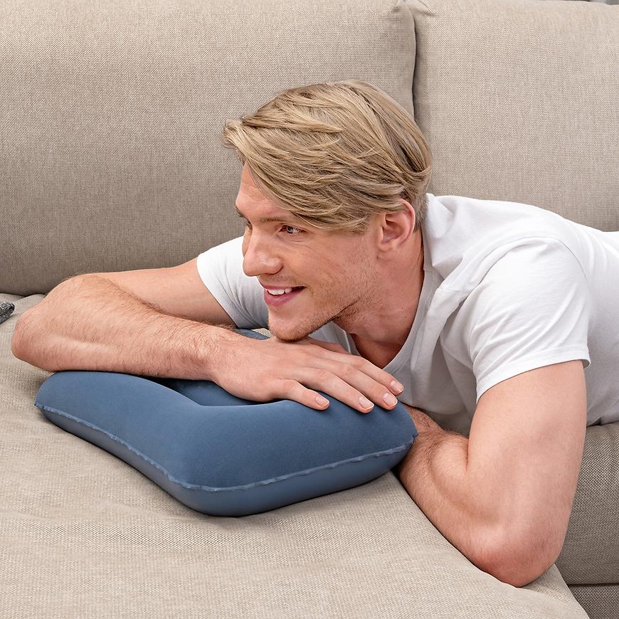 Nadmuchiwana poduszka Bestway® to doskonałe towarzystwo podczas wszelkich przygód na świeżym powietrzu lub podróży. Ta nadmuchiwana poduszka stworzona została z myślą o komforcie, umożliwiając Ci cieszenie się relaksującą drzemką podczas kempingu, podróży pociągiem, samochodem czy autobusem.