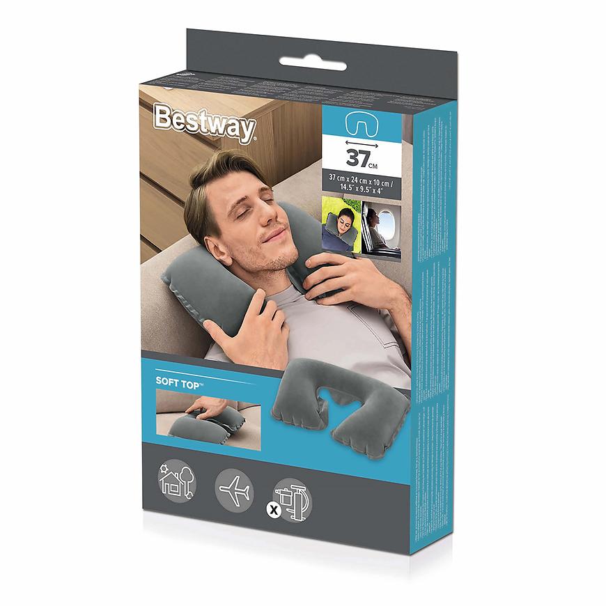 Poduszka na szyję Bestway® to doskonałe towarzystwo podczas wszelkich przygód na świeżym powietrzu lub podróży. Ta nadmuchiwana poduszka stworzona została z myślą o komforcie, umożliwiając Ci cieszenie się relaksującą drzemką podczas kempingu, podróży pociągiem, samochodem czy autobusem.