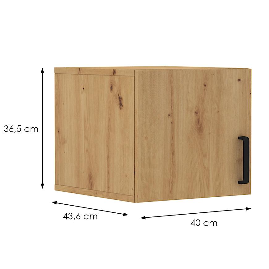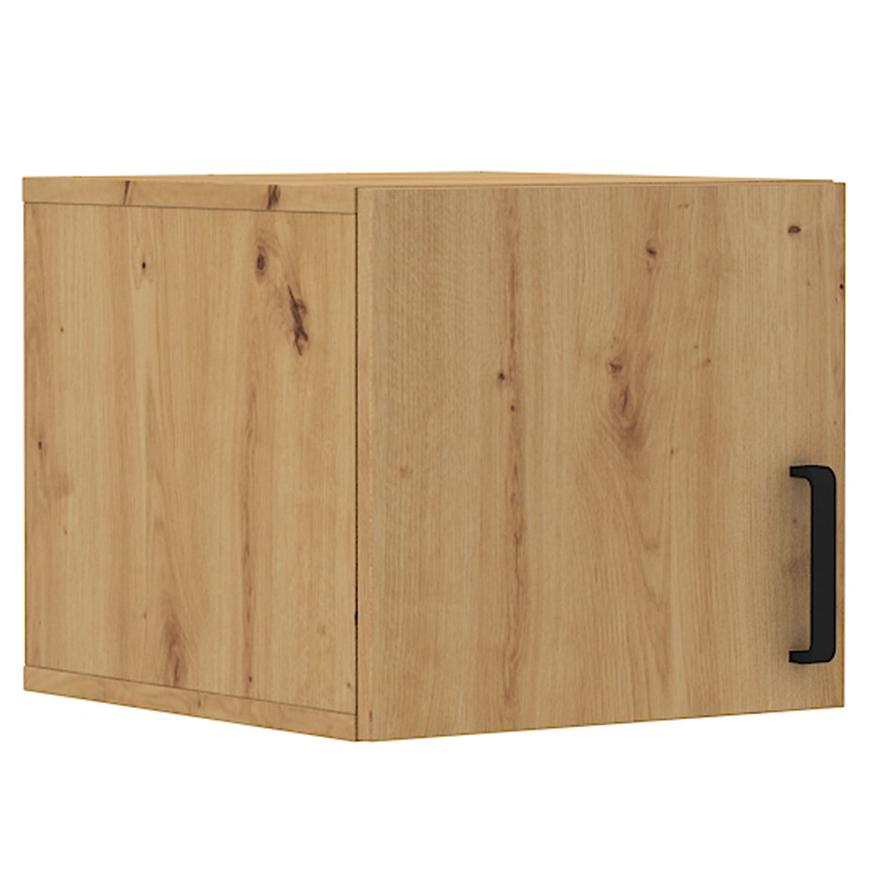 Fronty i korpus w kolorze dąb artisan dodaje całości wyjątkowego charakteru. Ten naturalny odcień dodaje elegancji i ciepła, sprawiając, że nadstawka staje się nie tylko praktycznym elementem, ale także designerskim dodatkiem do Twojej przestrzeni. Matowe wykończenie nadaje meblowi nowoczesnego wyglądu, jednocześnie podkreślając jego wysoką jakość. Konstrukcja opiera się na solidnej płycie wiórowej laminowanej, co zapewnia trwałość i stabilność nadstawki. Jednodrzwiowy design sprawia, że z łatwością dostaniesz się do przechowywanej zawartości, a jednocześnie nadstawka nie zajmuje zbyt dużo miejsca.