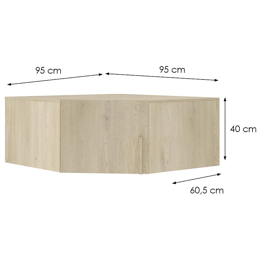 Nadstawka ma szerokość 95 cm, wysokość 40 cm i głębokość 60,5 cm, co czyni ją idealnym uzupełnieniem standardowych szaf z kolekcji BRAGA. Narożny, klasyczny kształt sprawia, że nadstawka pasuje do różnych aranżacji wnętrz – od nowoczesnych, minimalistycznych przestrzeni po bardziej tradycyjne pomieszczenia.