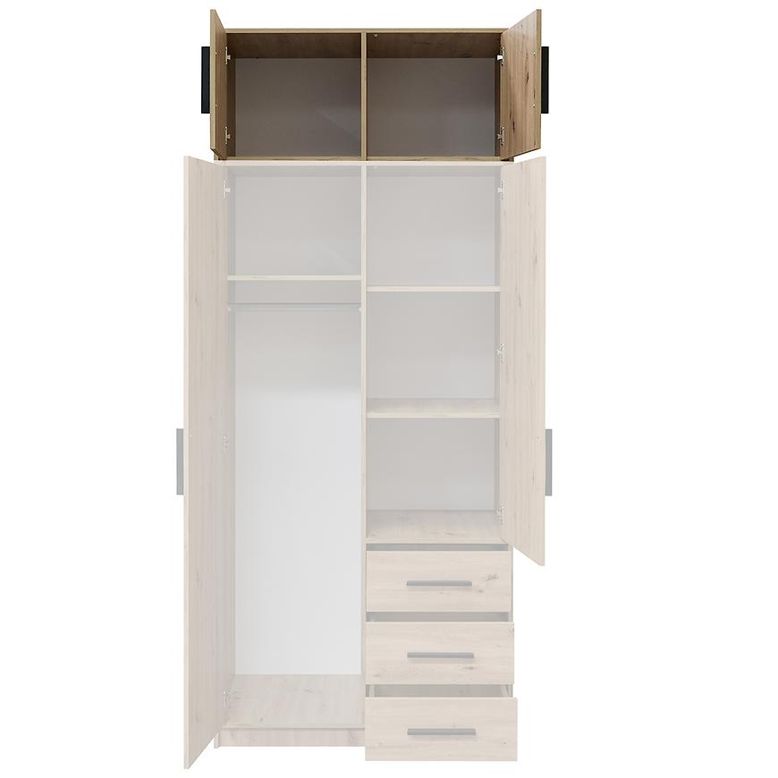 Nadstawka do szafy Kos D2 to funkcjonalne rozszerzenie kolekcji, oferujące wyjątkową możliwość personalizacji i organizacji przestrzeni. Jej szerokość wynosząca 100 cm sprawia, że stanowi doskonałe dopełnienie szafy Kos, dodając jednocześnie praktyczność i estetykę.