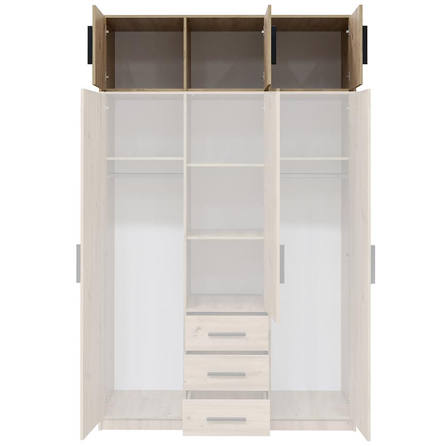 Konstrukcja nadstawki oparta jest na solidnej płycie wiórowej laminowanej, co gwarantuje jej wytrzymałość i stabilność. Możliwość dopasowania tej nadstawki do szafy Kos pozwala na elastyczną aranżację wnętrza zgodnie z własnymi potrzebami.