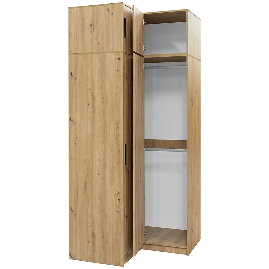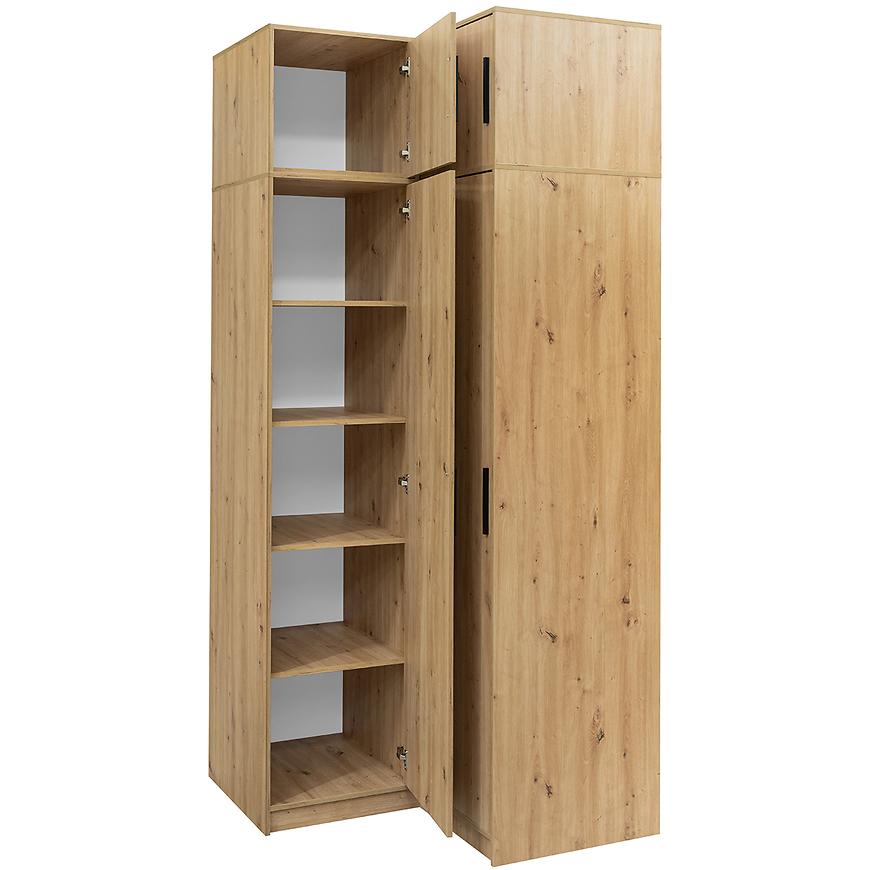 Nadstawka Kos Dąb Artisan to idealna opcja, by zwiększyć przestronność swojej szafy i dodaj elegancji w formie narożnego rozwiązania. Jest doskonałym wyborem dla tych, którzy szukają połączenia funkcjonalności i nowoczesnego wyglądu z naturalnym ciepłem drewna.