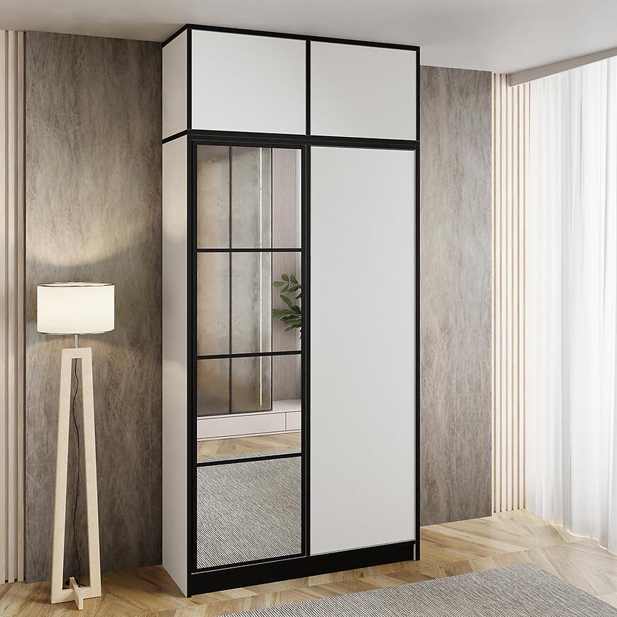 Nadstawka Eden 2d w kolorze białym to funkcjonalna nadbudowa z kolekcji EDEN, która pozwala zwiększyć przestrzeń do przechowywania. Ma wymiary 104,8 cm szerokości, 42 cm wysokości i 38,9 cm głębokości, co czyni ją uniwersalnym dodatkiem do mebli. Zarówno fronty, jak i korpus wykonano z laminowanej płyty wiórowej z matowym wykończeniem, nadając całości elegancki i nowoczesny wygląd. Nadstawka waży 22 kg i wymaga samodzielnego montażu. Produkt ma prosty kształt i nie posiada oświetlenia.