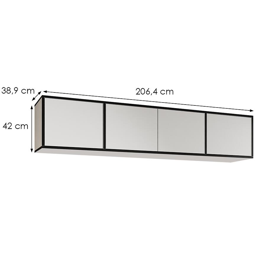 Nadstawka Eden 4d w kolorze Biały to przestronna i funkcjonalna nadbudowa z kolekcji EDEN. Jej wymiary to 206,4 cm szerokości, 42 cm wysokości i 38,9 cm głębokości. Zarówno fronty, jak i korpus wykonano z laminowanej płyty wiórowej z matowym wykończeniem, co nadaje meblowi nowoczesny i elegancki wygląd. Nadstawka waży 40 kg, ma prosty kształt, nie posiada oświetlenia i wymaga samodzielnego montażu.
