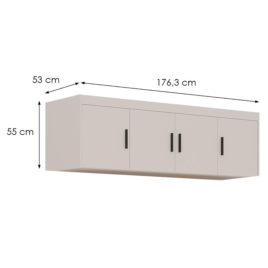 Szerokość 176,3 cm, wysokość 55 cm oraz głębokość 53 cm sprawiają, że nadstawka Elena 4D beż piaskowy jest proporcjonalna i dobrze prezentuje się zarówno w salonie, jak i w jadalni czy pokoju dziennym. Konstrukcja została opracowana tak, aby pasowała do modelu MR-000000007337678, MR-000000007337679, MR-000000007337684 co pozwala na stworzenie jednolitego zestawu mebli bez ryzyka niedopasowania. Dzięki przemyślanym wymiarom nadstawka nie przytłacza bryły mebla, a jednocześnie oferuje dodatkową przestrzeń użytkową.