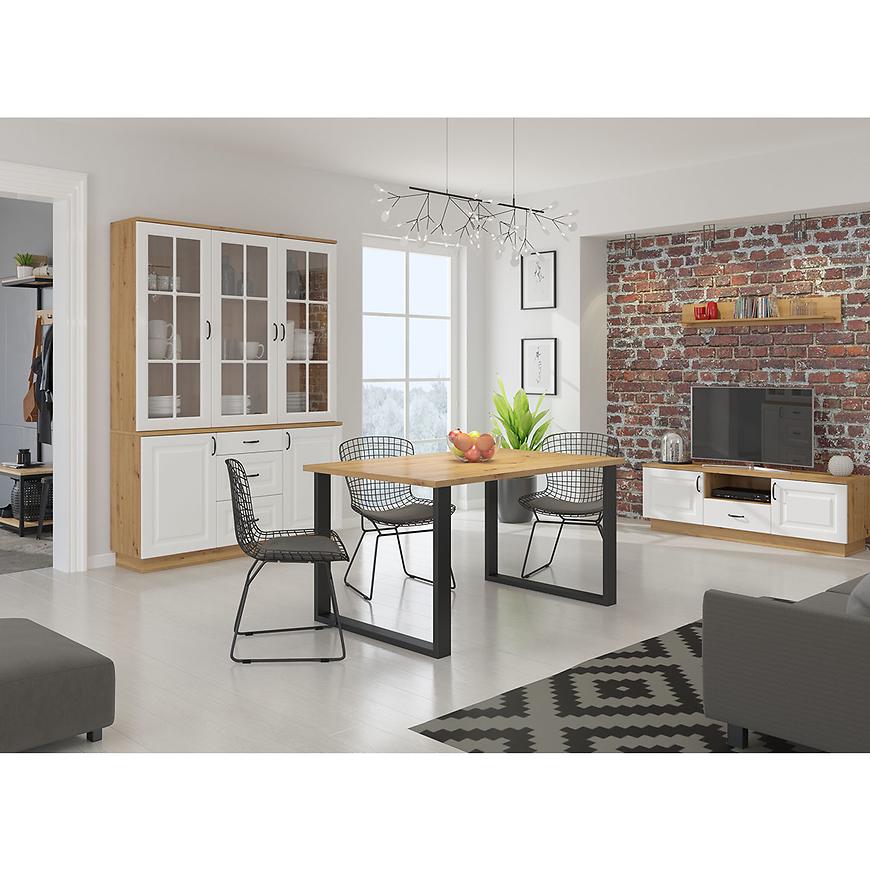 Fronty w odcieniu białym tworzą harmonijną całość z korpusem wykonanym z dębu artisan. Matowe wykończenie frontów nadaje meblowi elegancji i subtelnego wyglądu, podczas gdy matowe wykończenie korpusu podkreśla trwałość i solidność konstrukcji.