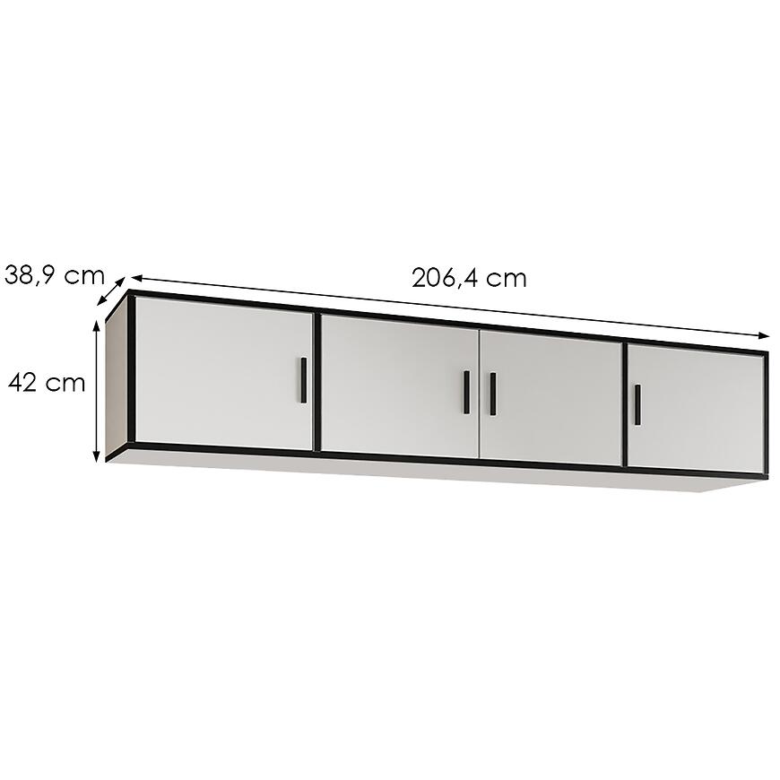 Nadstawka Roj 4d w kolorze białym to praktyczna i estetyczna nadbudowa z kolekcji ROJ, idealna do powiększenia przestrzeni przechowywania w pomieszczeniu. Jej wymiary to 206,4 cm szerokości, 42 cm wysokości i 38,9 cm głębokości, co zapewnia dużą powierzchnię użytkową. Fronty i korpus wykonane są z laminowanej płyty wiórowej z matowym wykończeniem, co nadaje nadstawce nowoczesny i elegancki wygląd. Produkt waży 40 kg i wymaga samodzielnego montażu. Nadstawka nie posiada oświetlenia i ma prosty, klasyczny kształt.