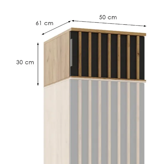 Nadstawka Sorento z kolekcji SORENTO to elegancki i funkcjonalny mebel, który doskonale sprawdzi się jako uzupełnienie szafy MR-000000007327725. Dzięki nowoczesnemu designowi i starannemu wykończeniu w kolorach craft złoty/czarny, nadstawka przyciąga wzrok i nadaje pomieszczeniu wyjątkowego charakteru.