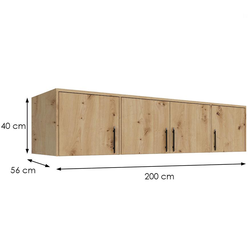 Odpowiednie wymiary (200 cm szerokości, 40 cm wysokości, 56 cm głębokości) sprawiają, że ta nadstawka idealnie współgra z szafą Smart SRN1 4D, tworząc zgrany duet mebli. Dodatkowa przestrzeń na górze szafy to praktyczne rozwiązanie dla osób, które chcą maksymalnie wykorzystać dostępne miejsce w pomieszczeniu.