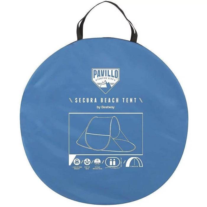 Praktyczny i mobilny namiot plażowy, chroniący przed promieniami UV/UPF 40+ wiatrem czy niewielkim deszczem. Idealnym podczas plażowania czy piknikowania. System samorozkładającego się namiotu pozwala na szybki montaż, w odróżnieniu od namiotów przeznaczonych do samodzielnego rozkładania. Dzięki srebrnej pokrywie odbijającej światło, namior nie nagrzewa się. W zestawie znajduje się pokrowiec, chroniący przed zniszczeniem czy zużyciem.