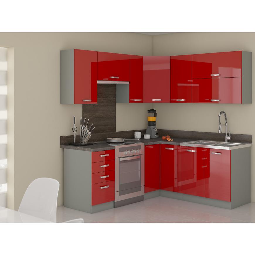 Narożna Kuchnia Rose to zestaw, który łączy w sobie doskonałe wykończenie, funkcjonalność i nowoczesny design, aby stworzyć wyjątkową przestrzeń kuchenną. Ten zestaw zapewnia mnóstwo miejsca do przygotowywania posiłków, przechowywania i eksponowania swoich kulinarnych talentów.