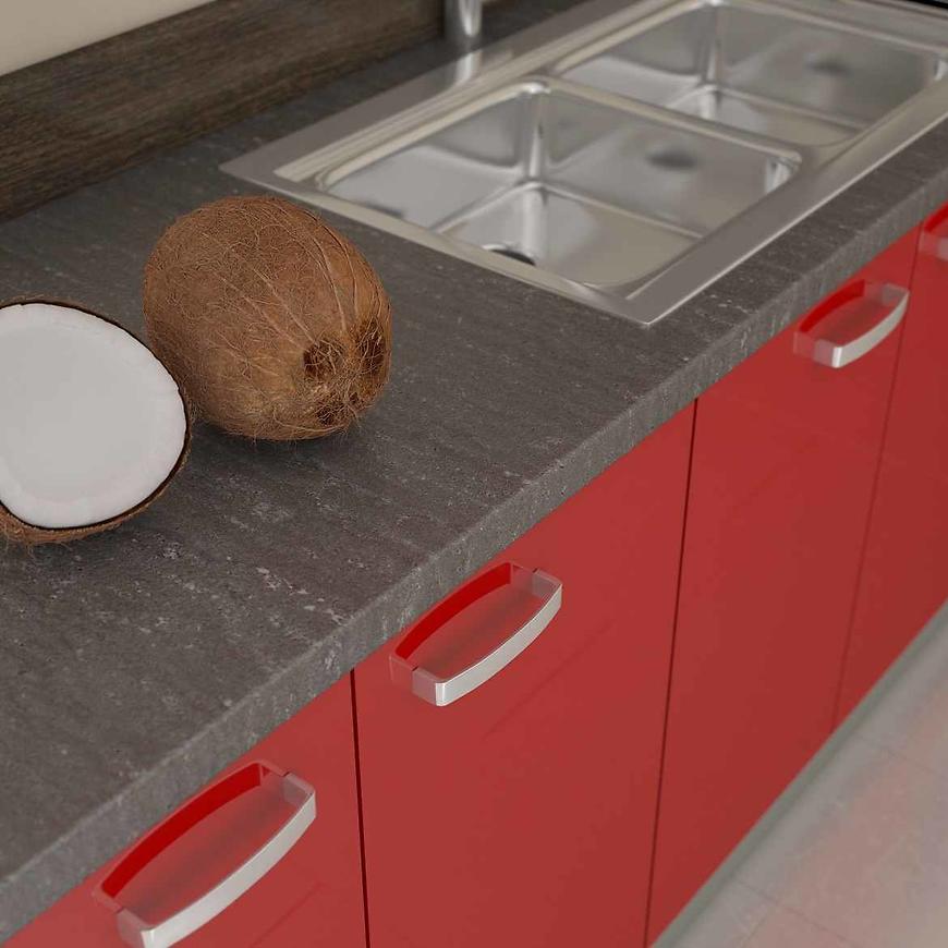 Blat o rozmiarze 89cm, 29 cm, 40 cm, w kolorze trawertyn ciemny jest częścią zestawu, a jego grubość wynosząca 2,8 cm sprawia, że jest nie tylko funkcjonalny, ale również efektowny. Jest to doskonałe miejsce do przygotowywania posiłków oraz eksponowania swoich smakowitych kulinarnych dzieł.