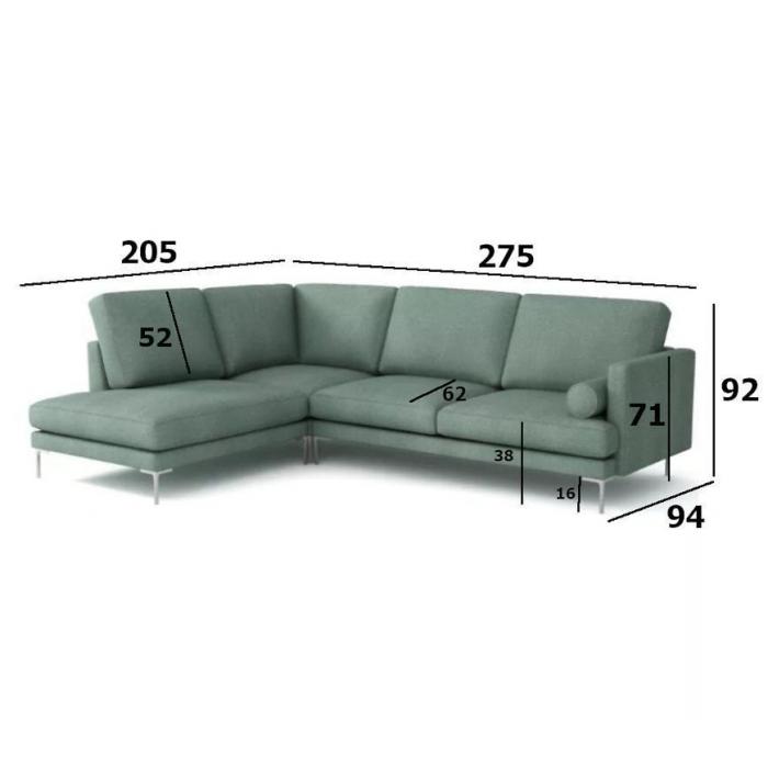Siedzisko wypełnia sprężyna bonell, zapewniając wygodę podczas użytkowania. Kanapa narożna Akron tapicerowana jest tkaniną z tworzywa sztucznego w delikatnej kolorystyce, która sprawi, że Twój pokój dzienny stanie się bardziej przytulny. Nowoczesny narożnik Akron śmiało możesz ustawić we wnętrzach w stylu skandynawskim, boho, ale także innych w nowoczesnych stylach.