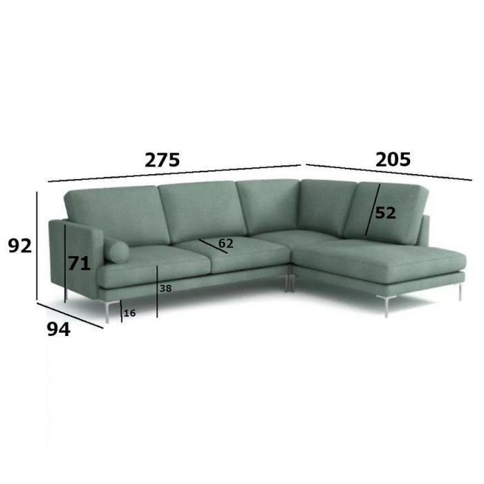Siedzisko wypełnia sprężyna bonell, zapewniając wygodę podczas użytkowania. Kanapa narożna Akron tapicerowana jest tkaniną z tworzywa sztucznego w delikatnej kolorystyce, która sprawi, że Twój pokój dzienny stanie się bardziej przytulny. Nowoczesny narożnik Akron śmiało możesz ustawić we wnętrzach w stylu skandynawskim, boho, ale także innych w nowoczesnych stylach.