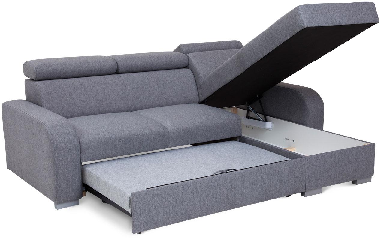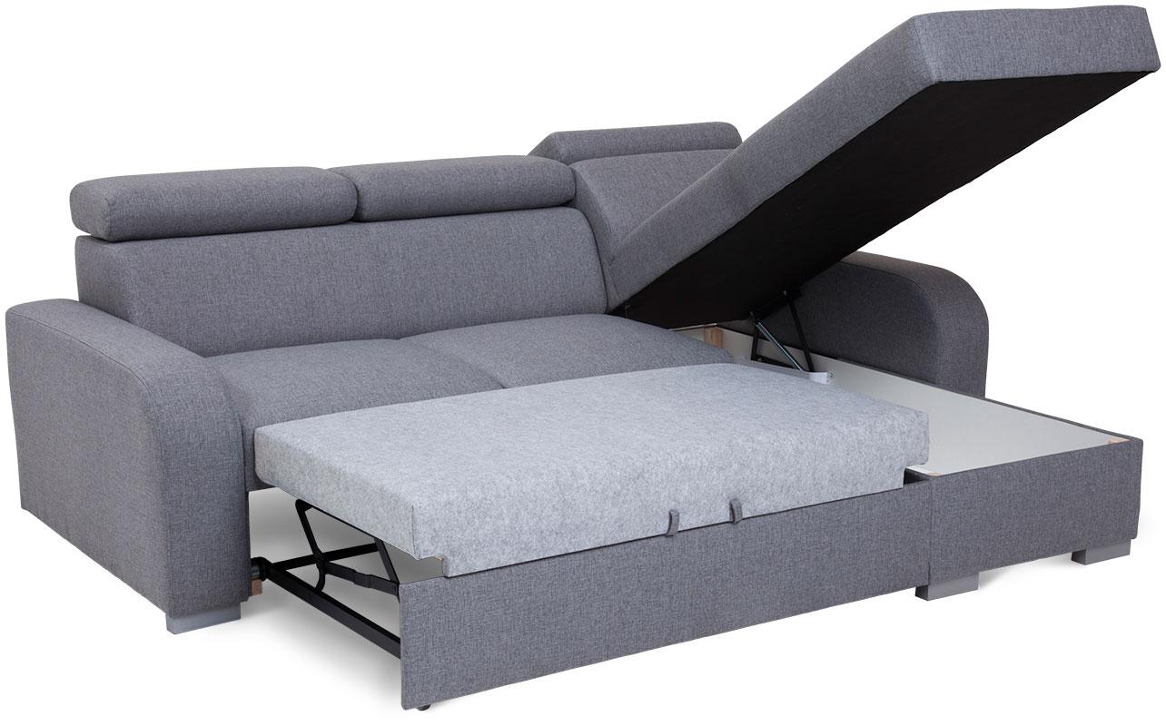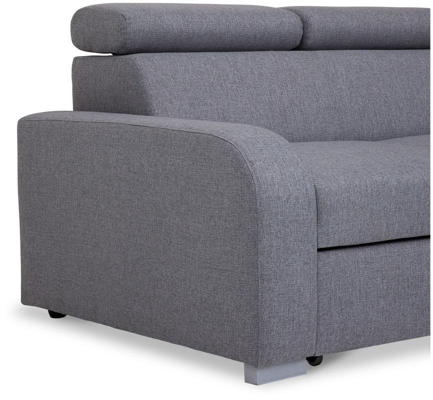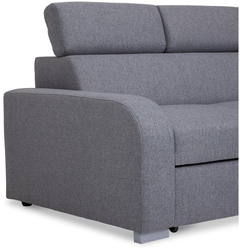 Narożnik Alan z funkcją spania to mebel, który zadowoli miłośników eleganckiej stylistyki, dbających o najmniejszy aspekt wystroju swojego salonu. Nie tylko prezentuje się doskonale, jest także wykonany zgodnie z najnowszymi trendami użytkowymi. To praktyczny i wygodny narożnik, który w dzień sprawdza się jako siedzisko dla całej rodziny, w nocy zaś zmienia się w wygodne posłanie. Połączenie sprężyn falistych i wysokoelastycznej pianki kreuje maksymalnie komfortową powierzchnię, która koresponduje z indywidualnym ułożeniem ciała użytkowników. Wspomagany, wózkowy system rozkładania jest intuicyjny w obsłudze i nie wymaga wysiłku. Narożnik Alan posiada pojemnik, w którym umieścić można nieużywaną pościel, aby nie zaburzała salonowej estetyki w ciągu dnia. Mebel został wyposażony w regulowane zagłówki – każdy użytkownik może więc zoptymalizować ich wysokość przy użyciu stopniowanych automatów.