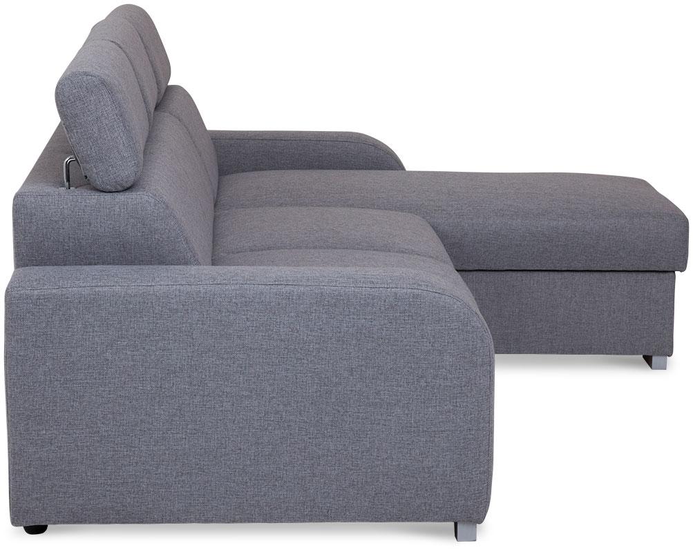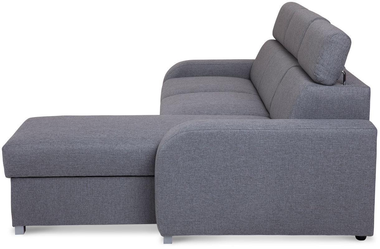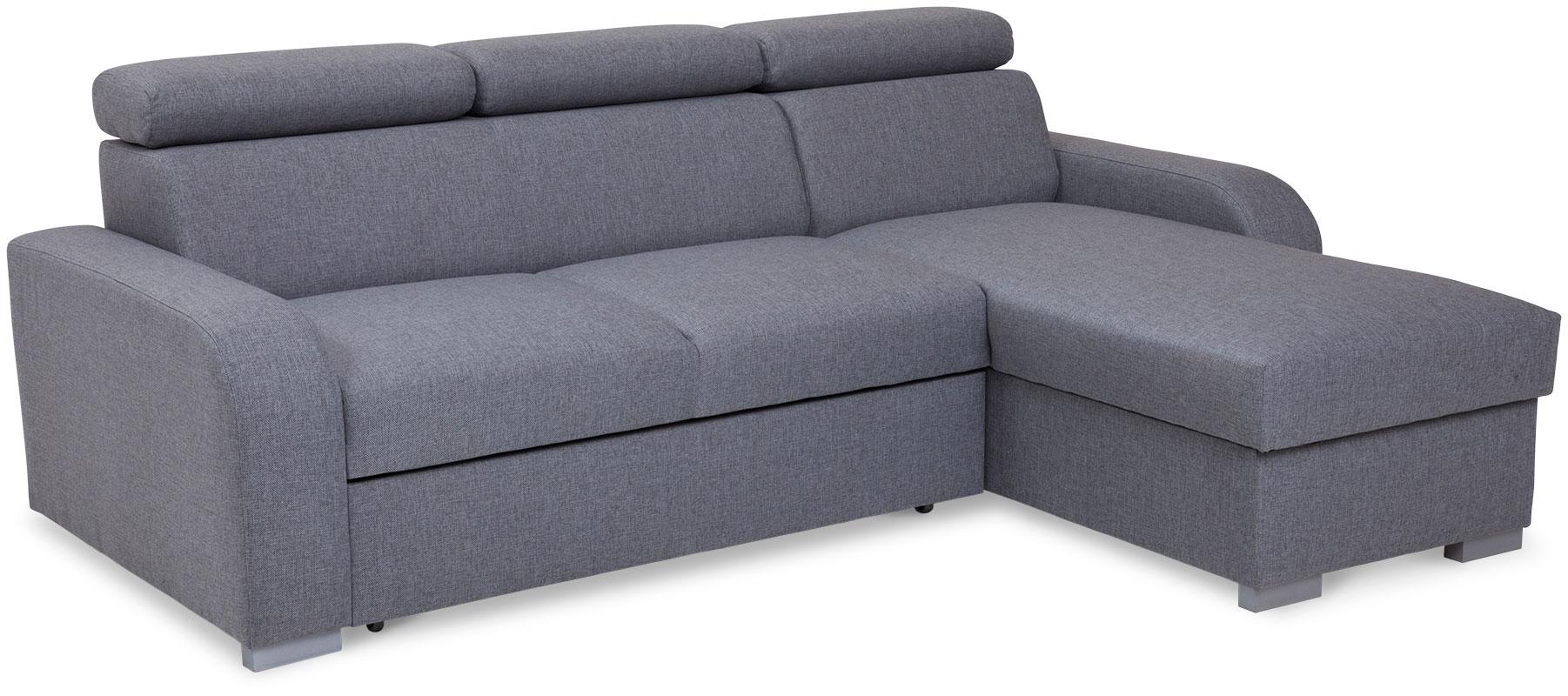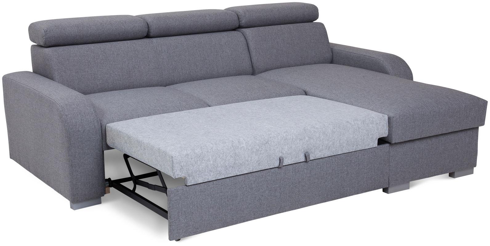 Narożnik Alan z funkcją spania to mebel, który zadowoli miłośników eleganckiej stylistyki, dbających o najmniejszy aspekt wystroju swojego salonu. Nie tylko prezentuje się doskonale, jest także wykonany zgodnie z najnowszymi trendami użytkowymi. To praktyczny i wygodny narożnik, który w dzień sprawdza się jako siedzisko dla całej rodziny, w nocy zaś zmienia się w wygodne posłanie. Połączenie sprężyn falistych i wysokoelastycznej pianki kreuje maksymalnie komfortową powierzchnię, która koresponduje z indywidualnym ułożeniem ciała użytkowników. Wspomagany, wózkowy system rozkładania jest intuicyjny w obsłudze i nie wymaga wysiłku. Narożnik Alan posiada pojemnik, w którym umieścić można nieużywaną pościel, aby nie zaburzała salonowej estetyki w ciągu dnia. Mebel został wyposażony w regulowane zagłówki – każdy użytkownik może więc zoptymalizować ich wysokość przy użyciu stopniowanych automatów.