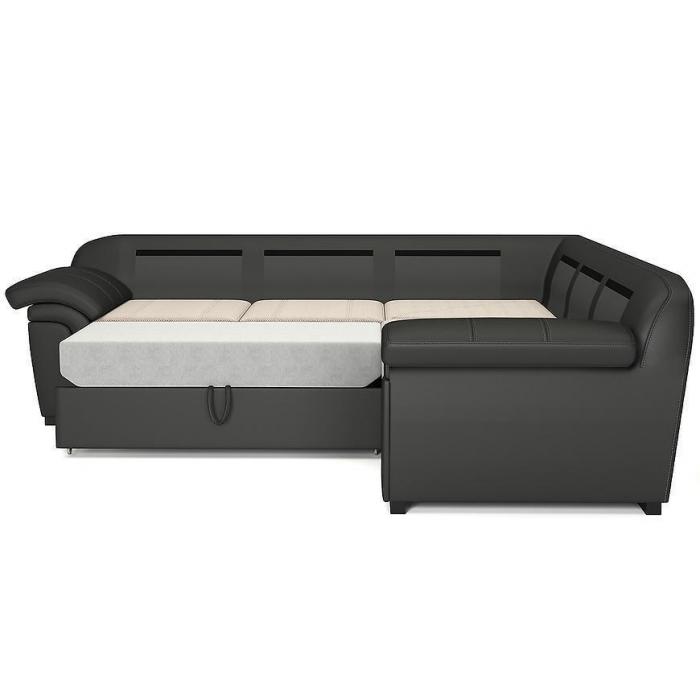Narożnik tapicerowany jest wysokiej jakości ekoskórą, którą zdecydowanie łatwiej utrzymać w czystości niż tkaninę. Posiada funkcję spania oraz pojemnik na pościel - dodatkowe miejsce do przechowywania pozwoli zachować porządek w pomieszczeniu. Prostotę i łatwość użytkowania gwarantuje automat ułatwiający rozkładanie i system rozkładania typu Delfin. Jest to szybki i najbardziej praktyczny sposób rozkładania.